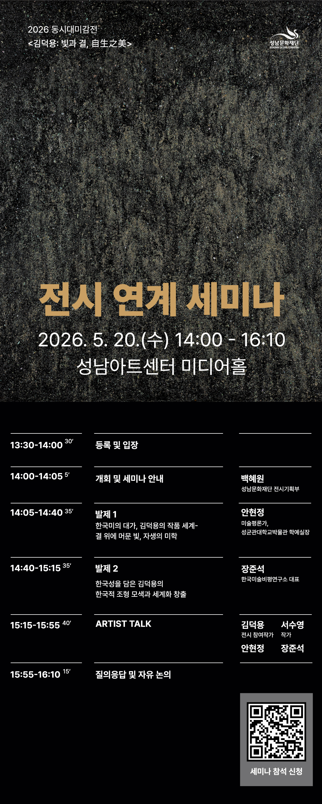 | 2026 동시대미감전 <김덕용: 빛과 결, 自生之美> 전시 연계 세미나 안내 | |||||