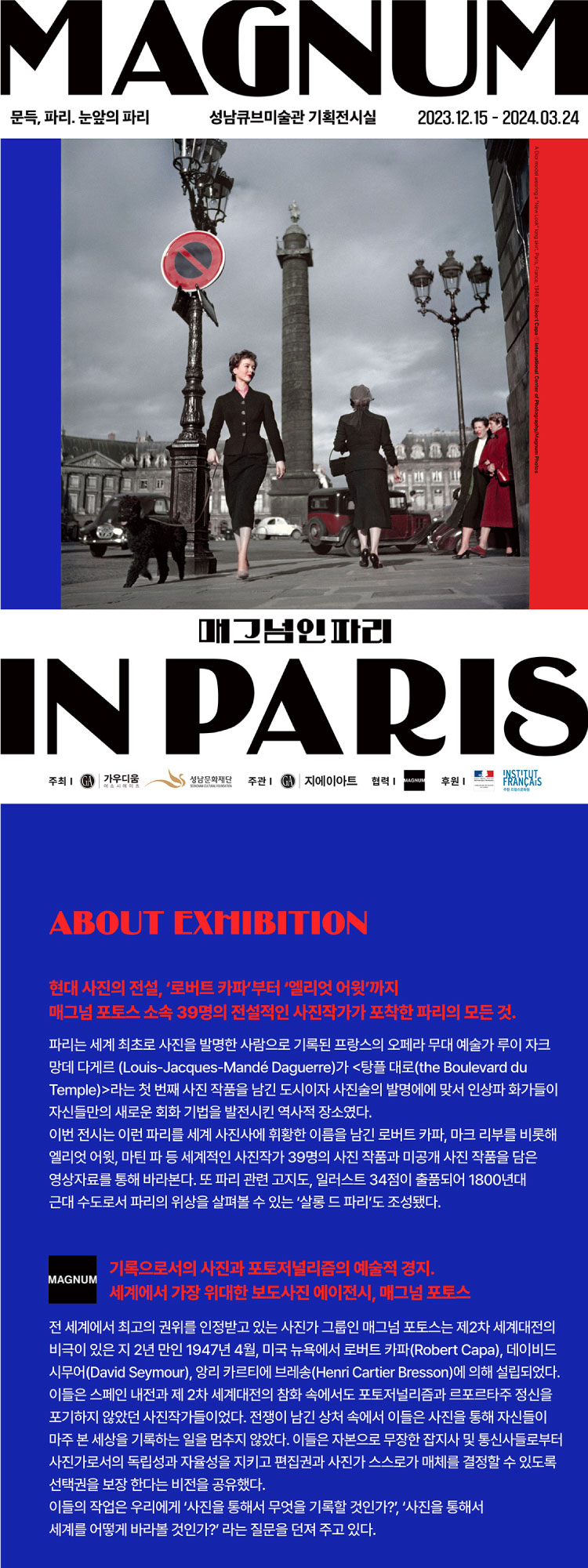 | 전시기간 | 2023-12-15 ~ 2024-03-24 | 개관시간 | 10:00-18:00(17시 매표 및 입장 마감) *매주 월요일 휴관 *2/9(금)~2/12(월) 설 연휴 휴관 |